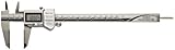 The 500-736-10 has the ABSOLUTE electromagnetic induction linear encoder. It weighs 198 g and measures outer diameter (OD), inner diameter (ID), depth, and step, where the butt end of the fixed jaw measures one end of a work piece before its upper/lower or inner/outer "steps" are measured. This caliper has carbide-tipped jaws for ID measurements. Main scale length is 290 mm, outside jaw depth is 50 mm, inside jaw length is 24.5 mm, inside jaw depth is 20 mm, and beam width is 16 mm. Range is 0 - 8"/0 to 200 mm, LCD resolution is 0.01 mm, repeatability is 0.0005"/0.01 mm, and accuracy is rated + or - 0.001". Dust/water protection level is IP67. An alarm alerts the user to low voltage and counting value composition errors. A rolling thumbwheel makes fine adjustments and a thumbscrew locks the scale’s position. Response speed is unlimited. The caliper has Statistical Process Control (SPC) data output capability; it outputs data using a serial data interface to a computer or other dedicated recording device using SPC cable with data switch (05CZA624 or 05CZA625, depending on cable length). The SR44 silver oxide cell battery (938882) lasts approximately 3 years with normal use.